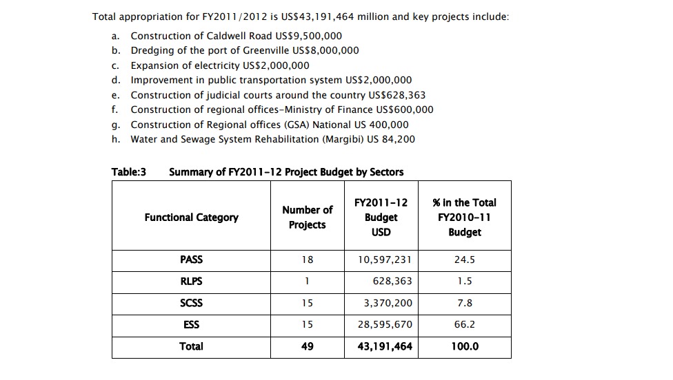 Screenshot above shows the share of PSIP FY 2011/2012 | Source: National Budget