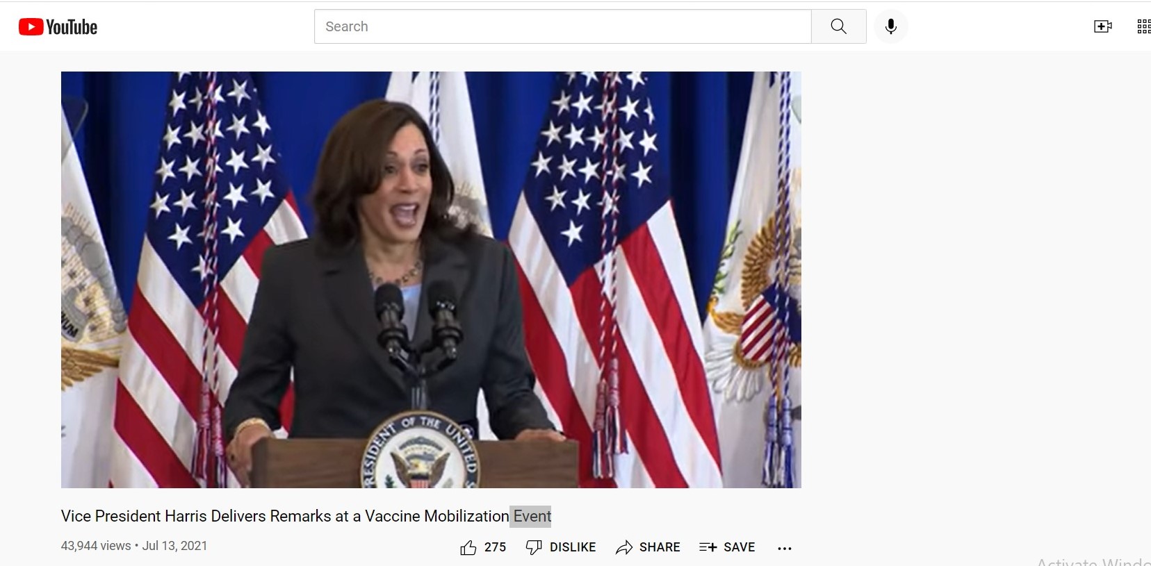In the Video posted to the White House YouTube channel, Harris was speaking at a vaccine mobilization event on July 12, 2021 where she outlined the US Government’s strategies to increase the number of vaccinated people in the country.