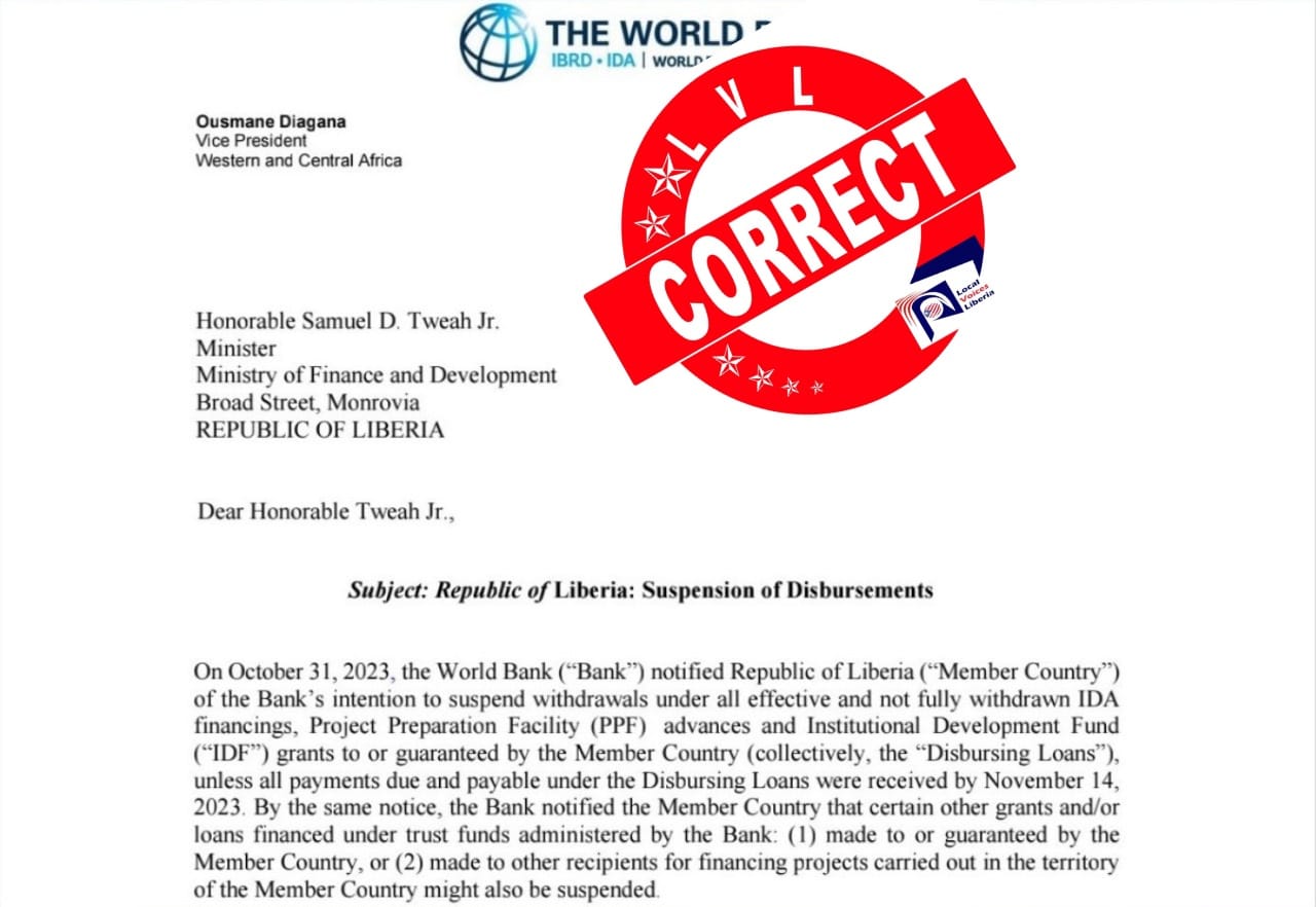 In the last few days, social media users have been sharing a letter believed to be addressed to Finance Minister Samuel D. Tweah Jr. concerning the “suspension of disbursements” by the World Bank to the Republic of Liberia.