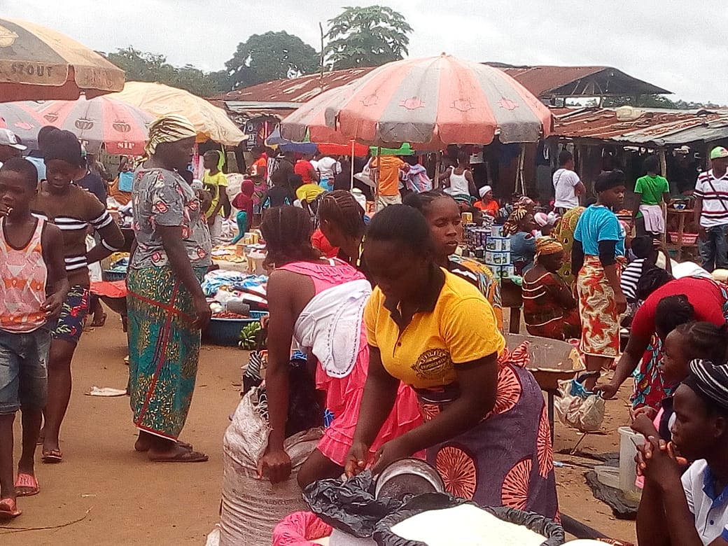 Kortu Flomo (in white tops) sells on a busy market day in Bopolu city | Photo By: Henry B. Gboluma, Jr.