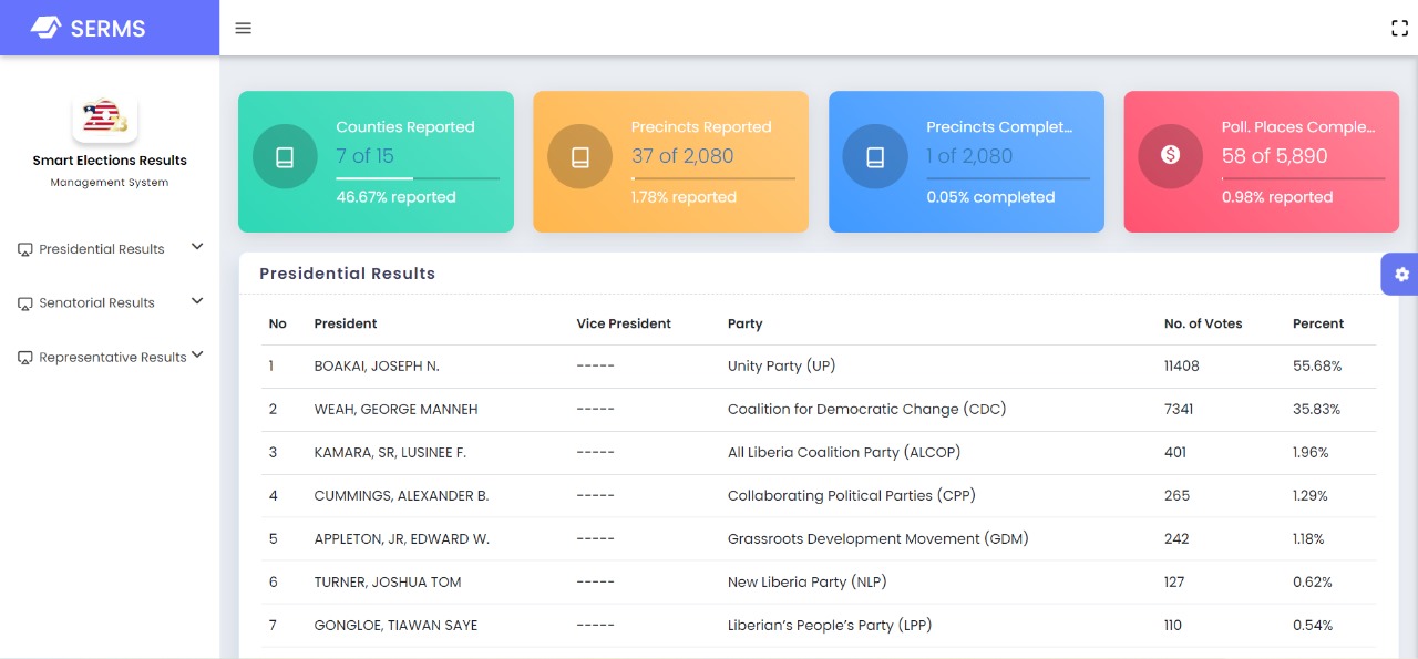 We were also contacted by Mr. Dobor Bedell, Founder and owner of Smart Systems and Developer of the Smart Elections Results Management System (SERMS), who said that his firm was contracted by TSM to develop the portal.