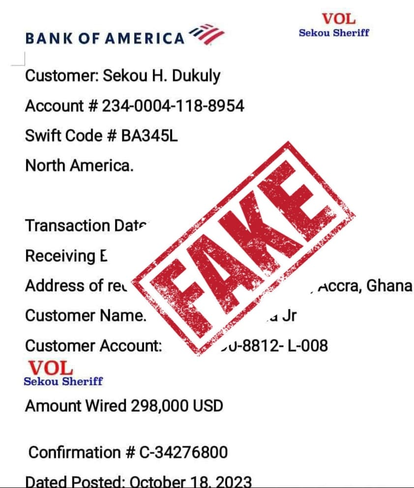 Fact Check: Image of Bank Transfer Document Shared By Journalist Sekou Sheriff is Fake