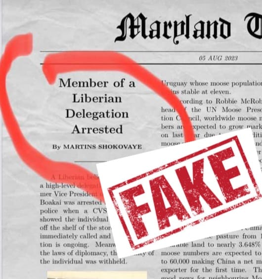 The post, which made with a screenshot of the article, reads: “A member of Joe Boakai’s delegation was caught on camera stealing from a local store in the United States. Investigation is ongoing. Stay tuned for details”. In the screenshot which was taken from a newspaper named “Maryland Times”, reads: “Member of a Liberian Delegation arrested”.