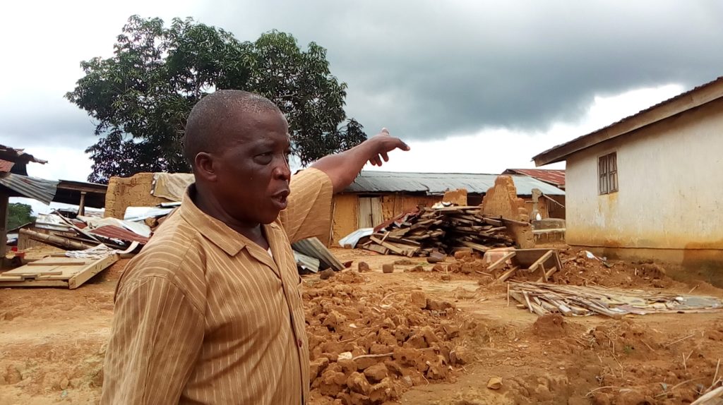Stanley Yommie, who is the leader of the Gio community, says he was constrained to relocate his family to a nearby village after “my entire building broke down.”