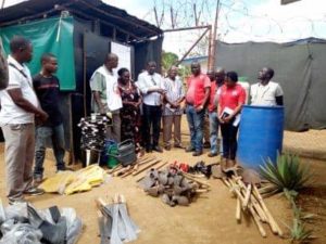 The farming tools include 30 cutlasses, 50 regulars’ hoes, 30 rain boots, and 30 raincoats. Others are 15 watering cans, 39 diggers, 30 rakes, and 30 shovels amongst others. They also provided 15 plastic chairs and two office tables.