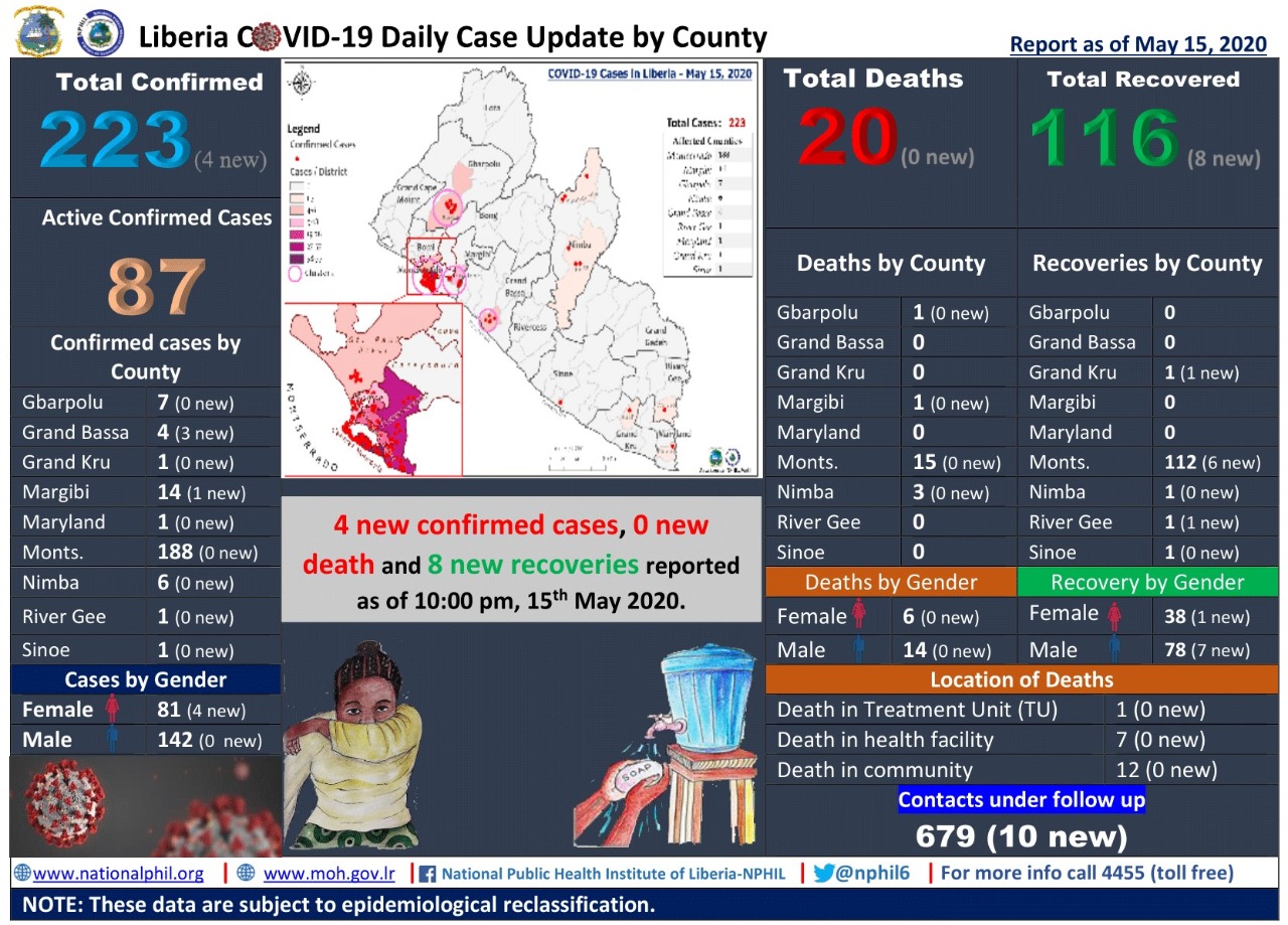 Report of the additional three confirmed cases hit the port City of Buchanan early Saturday morning, May 16 after reporters  interviewd the County Health Officer, Dr. Anthony Tucker.