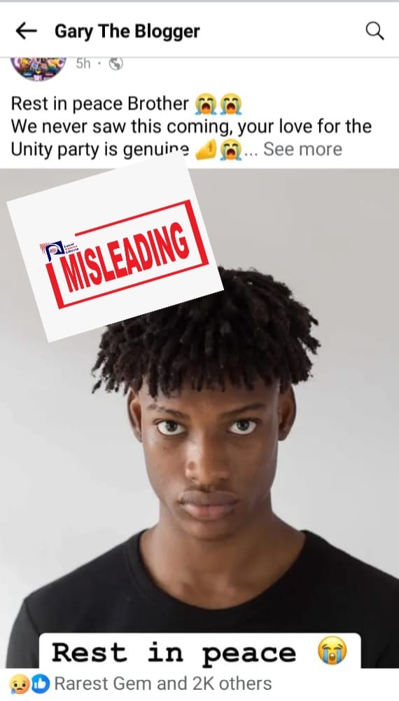 An image of a young man has been trending on Facebook following news of the terrible incident that caused the death and injury of some supporters of the Unity Party on Monday evening.