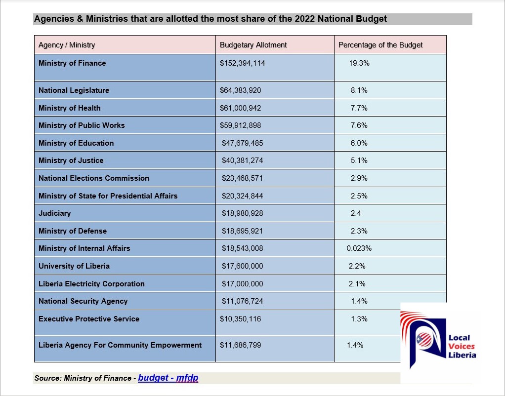 Monrovia — The Legislature has approved the 2022 National Budget amid claims by scores of Liberians that certain government ministries or agencies as well as the Legislature are the “biggest beneficiaries” of the fiscal envelope. We review the budget and draw up a chat to show the agencies/ministries or sectors that received the biggest shares of the budget.