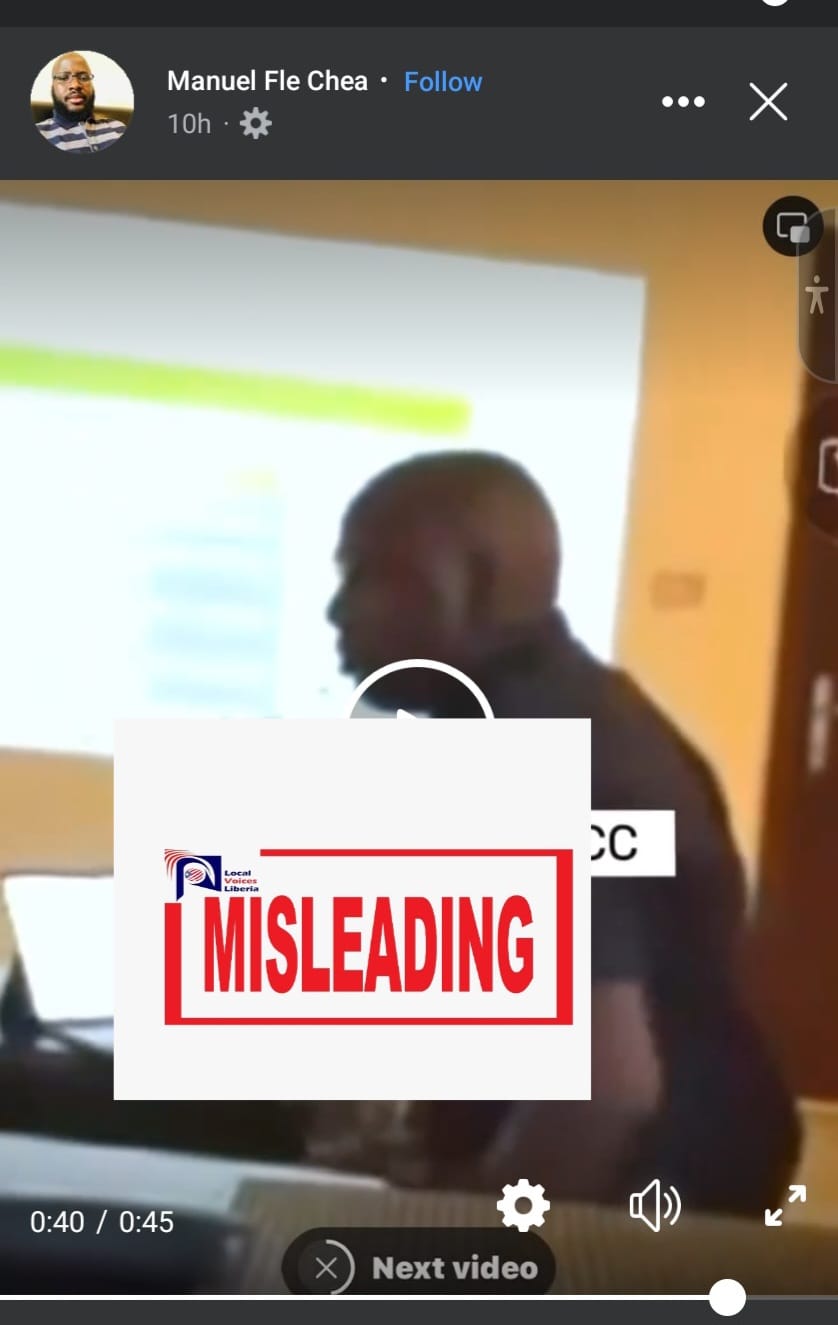 Also, Chichipoly Room, a popular Facebook group, shared the video claiming that it was released by CDC Secretary General and Mayor of Monrovia, Jefferson T. Koijee. The post had the same claims about Mr. Bloh working with officials of the Unity Party in their war room.
