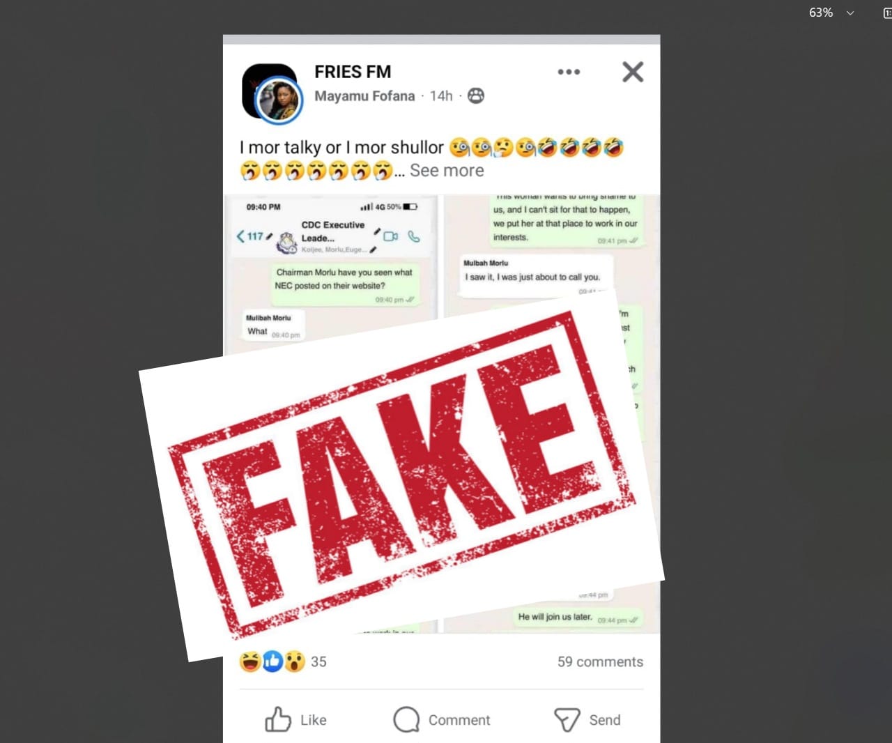 Misleading: WhatsApp Screenshot of Chats from CDC Chairman Mulbah Morlu is Fake