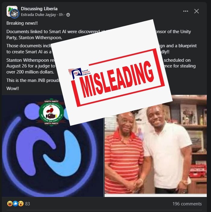 Based on the evidence we gathered, the claim that documents linked to Smart AI were found at the home of Stanton Witherspoon is false. Given how widely Smart AI has been discussed in Liberia, it is concerning for an information of such nature to not be a topic for discussion.