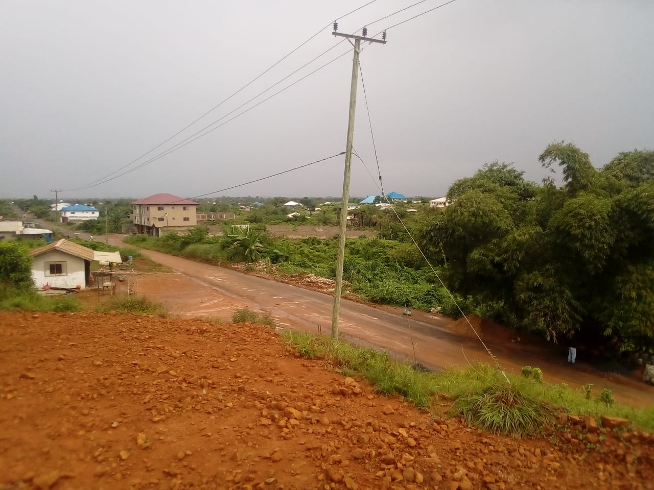 A partial view of a road leading to the community that had one of the two “COVID-19 check points” or hand washing stations. The hand washing station has been removed due to the lack of support | Photo By: Aria Deemie