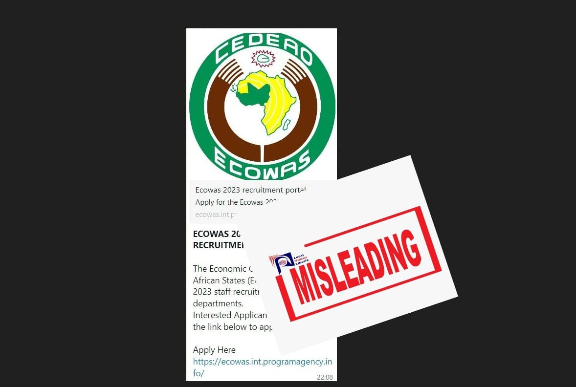 Monrovia – A viral link with a message that “The Economic Community of West African States (ECOWAS) has begun 2023 staff recruitment to various departments” is being shared through several social media messaging apps including WhatsApp and Messenger. The link has a message that encourage “interested applicants to click and apply”.